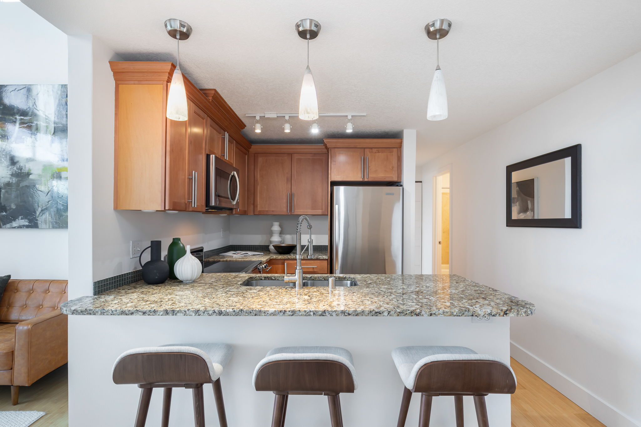 Oh, what a view! Watch sunsets behind the Space Needle and Olympic Mountains from this light-filled, top floor NY-style loft. Enjoy soaring 20 ft ceilings, floor-to-ceiling windows, gleaming bamboo floors, fresh paint, new carpet, and a cozy wood-burning fireplace. The kitchen features granite counters, stainless appliances, and bar seating. Includes three spacious closets, in-unit W/D, balcony, and a flexible second bedroom. Comes with the rare convenience of TWO storage units and TWO parking spots (EV charging available). The building offers a lobby entrance, Amazon lockers, elevator, + outdoor patios with BBQs for entertaining. Pet-friendly w/ no rental cap, and located near the Light Rail and vibrant Capitol Hill shops and restaurants.